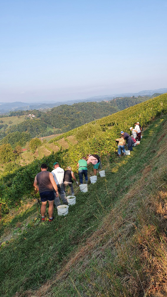 Two generations deal with the work on the farm. Father Srečko with his wife Jožica and their son Silvo and daughter-in-law Alenka, who are both agronomists. Cultivation comprises 6 ha of our own vineyards on the South and South-West slopes of Jareninski Vrh and Slatinek. On the vineyards, which are between two and thirty years old, we produce vintage Yellow muscat, royally scented Renski Riesling, elegant Chardonnay, delicate White Pinot, inebriant Muscat otonel, grass-like aromatic Sauvignon, popular Laski Riesling and jovial Grey Pinot. Last but not least, there is a Traminer who makes delight for all wine lovers across the world for the last two years.